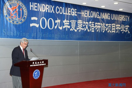 在開學式上,張曉光院長首先代表學校對遠道而來的Jay McDaniel博士及美國的同學們表示熱烈的歡迎。他簡要介紹了黑龍江大學的歷史概況和現狀,以及學校在對外交流方面所取得的成績。他預祝同學們通過此次研修不僅取得學習上的飛躍,更增進對中國的了解,促進兩國間的交流合作。