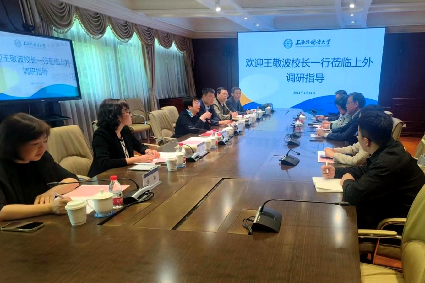 在上海外國(guó)語(yǔ)大學(xué)虹口校區(qū),王敬波一行與上海外國(guó)語(yǔ)大學(xué)原黨委書(shū)記姜鋒、高級(jí)翻譯學(xué)院院長(zhǎng)張愛(ài)玲會(huì)面,雙方就進(jìn)一步加強(qiáng)外國(guó)語(yǔ)言文學(xué)學(xué)科、翻譯學(xué)科、區(qū)域國(guó)別學(xué)科、交叉學(xué)科建設(shè)及人才培養(yǎng)進(jìn)行了深入交流。