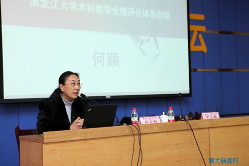 隨后,何穎副校長對本科教學業績評價指標體系進行了詳細說明。教學業績以計分的方法,將本科教學統計為200分,研究生教學為100分,總數為300分。其中,本科生教學再細化為教學工作量100分與教學質量100分。教學工作量由理論教學、實踐教學、指導實習、指導畢業論文(設計)與學年論文、監考、教學組織建設、指導學生創新實踐獲獎7項標準構成;教學質量由教學質量獎、質量工程專項、教學成果獎、教改項目、教研論文、教材六項標準構成,各個類別具有不同的統計計算方法。何穎副校長著重指出,本科教學業績評價指標體系在增強教師自身教學水平和大學生人才培養等方面將起到非常重要的作用,各位老師應該配以足夠的重視,結合各個專業課程的實際教學情況,提出反饋意見,將整個評價指標體系打造的更加具有普遍性與科學性。