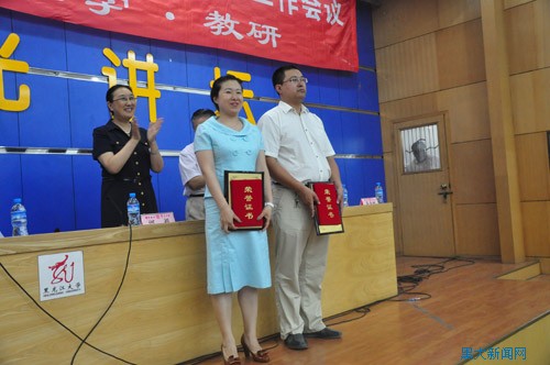 7月13日下午,我校2011年度教學管理工作會議在陽光講壇召開。本次會議主題為“教師,教學,科研”。在一個學期教學任務接近尾聲之際,表彰在教學工作中作出突出貢獻的教師,總結過去一年來所取得的成績,展望十二五,統一思想,明確方向。我校副校長何穎、教學評估與督導工作顧問曹林、首席督學曹重光、教學研究與評估中心主任陳文江、創業教育學院院長吳金秋在主席臺就坐。各教學院部的教學副院長、系主任、教研室主任、實驗室主任、全體督學、各學院的督導和受到表彰獎勵的教師代表出席會議。會議由教務處處長蔣鯤主持。