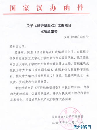 據悉,我校于2004年5月圓滿完成“國家漢辦2001年重點規劃項目”——對俄中小學、大學本科系列漢語教材《漢語新起點》(中小學)、《漢語新目標》(大學)編寫項目,彌補了當時適用于俄語國家漢語教學的漢語教材空白,將俄羅斯的漢語教學推進到一個更高的階段,擴大了我校在俄羅斯漢語教學界和國內對外漢語教學界的知名度。